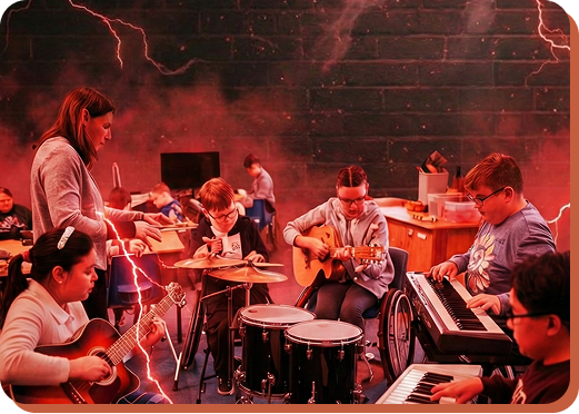 Music is meant to be shared. In Labs, students play together, collaborate with peers, and learn how to listen, respond, and perform as part of a group—just like real musicians do.