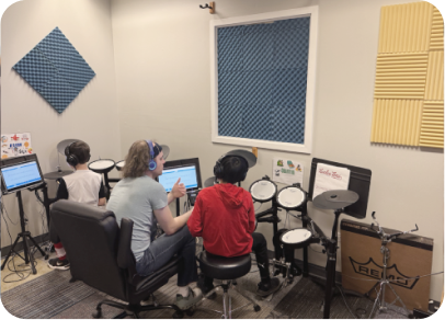 Our music classes are held in inviting, acoustically sound studios. While your child learns, relax in our cozy observation area with complimentary Wi-Fi, ensuring a comfortable and enjoyable experience for both you and your little one.