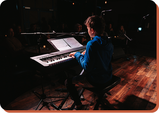 Piano Lab students don't just learn to read music—they learn to make music. Our curriculum balances technique and theory with improvisation, chord progressions, and playing by ear. Whether your child dreams of classical performance or wants to play their favorite songs, our experienced instructors meet them where they are and guide them toward real musical fluency, not just mechanical repetition.