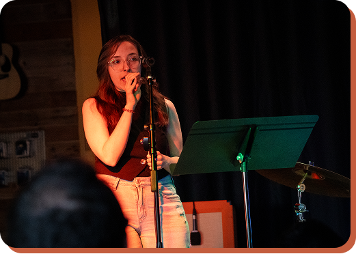 Great singing isn't just about hitting notes—it's about telling a story. Our vocal curriculum balances foundational technique with artistic expression, teaching students how to control their instrument while connecting emotionally to their music. From breathing exercises to performance coaching, we develop well-rounded vocalists who can adapt to any genre and own any stage.