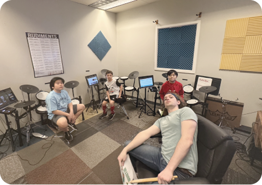 Our music classes are held in inviting, acoustically sound studios. While your child learns, relax in our cozy observation area with complimentary Wi-Fi, ensuring a comfortable and enjoyable experience for both you and your little one.